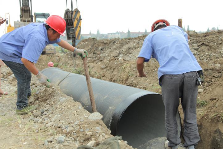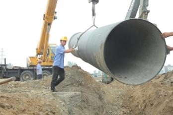 8月31日中上午11時許,天氣陰冷,烏云低垂,一場大雨即將來臨。在內(nèi)環(huán)南路-沿江大道段供水管網(wǎng)施工工地上,卻是一派機器轟鳴、熱火朝天的施工景象。襄陽中環(huán)水務供水工程有限公司第五項目部施工員王俊,正和另外5名施工員一起,鋪設內(nèi)環(huán)南路-沿江大道長達3.2公里、直徑1.2米的供水主管網(wǎng),解決余家湖片區(qū)居民家中水壓低的問題。