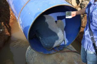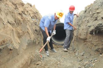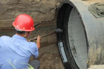 一截管道安裝完畢,王俊鉆進了管道中,沿著新鋪設的這截6米長的管道,一邊爬一邊觀察,檢查管道接口處的皮圈是否有縫隙,有沒有受擠壓而外露。見皮圈處平整無縫,王俊才放心地爬了出來。盡管當天氣溫不高,但管道中密不透風,讓人喘不過氣,一趟爬下來,王俊的腦門上布了一層細細的汗珠。