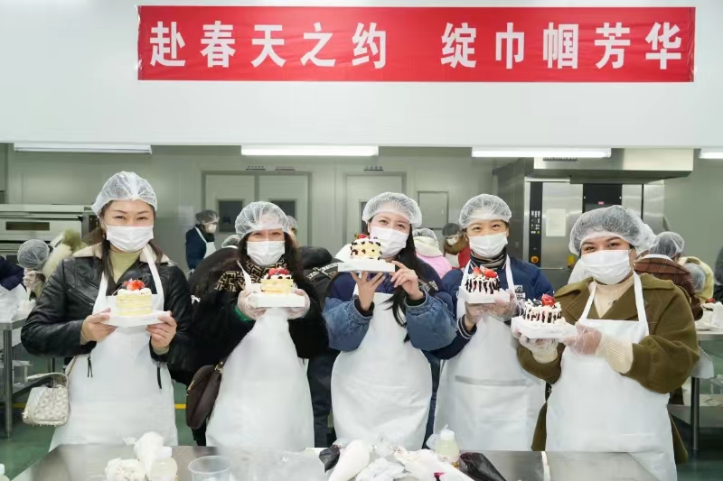 活動現場,在專業烘焙老師指導下,供水女職工瞬間化身“甜點大師”,發揮想象力和創造力現學現做。從做蛋糕前的準備到蛋胚的擺放、奶油的涂抹、再到最后的造型裝飾,每個步驟都充滿了創意和樂趣,最終的成品蛋糕也各具風格。