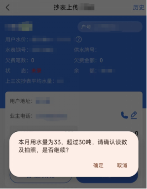 年初,公司完成智慧水務(wù)平臺(tái)營(yíng)收系統(tǒng)升級(jí),新增了手機(jī)抄表、數(shù)電發(fā)票開具、掃碼評(píng)價(jià)等功能,其中“手機(jī)抄表”實(shí)現(xiàn)了用水量異常預(yù)警,在實(shí)際運(yùn)用中發(fā)揮了重要作用。在宜城窯灣八隊(duì)武先生家的例行抄表過程中,公司抄表員范云飛、李一可通過“手機(jī)抄表”系統(tǒng)錄入數(shù)據(jù)時(shí),“抄表上傳”頁面自動(dòng)彈出“本次用水量超過30噸”的提醒。經(jīng)與用戶過往平均用水量對(duì)比后,抄表員確認(rèn)該用戶本季度用水量遠(yuǎn)超日常,并在進(jìn)一步觀察中發(fā)現(xiàn)水表持續(xù)緩慢轉(zhuǎn)動(dòng),判斷用戶表后可能存在漏水點(diǎn)。